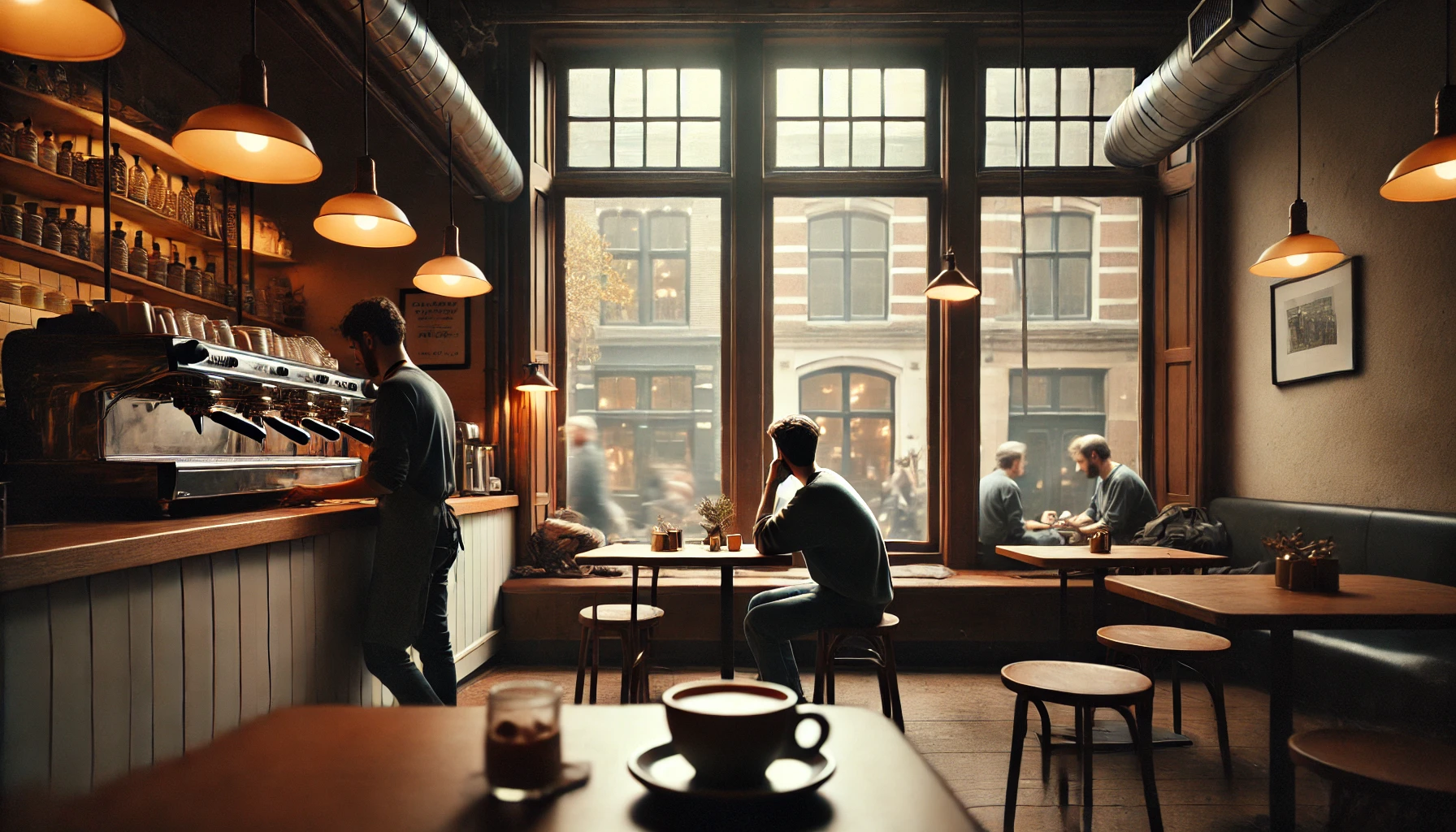 잠시 후, 따뜻한 커피 한 잔이 내 앞에 놓였다. 향을 음미하며 한 모금 마셨다. 입 안에 퍼지는 부드러운 맛과 함께 따뜻함이 온몸으로 번져갔다. 아무 생각 없이 커피를 마시면서 창밖을 바라보니, 길을 걷는 사람들의 모습이 눈에 들어왔다. 저마다의 속도로 걷고 있는 사람들, 어떤 이는 급하게 뛰어가고, 또 어떤 이는 느긋하게 걸으며 하늘을 올려다보고 있었다. 모두가 각자의 하루를 살아가고 있었다.